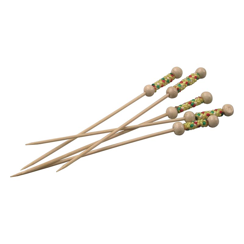 Skewers add a refined touch to bite-sized appetizers, fruit slices, and cocktails garnishes.
